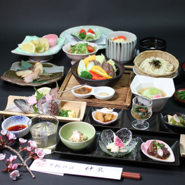 13年5月23日 冬桜の宿神泉では、ランチメニューをリニューアルしました! ランチメニュー 神川の姫豚を使用した料理や、その場で楽しめる釜飯など多数ご用意があります。 日帰り入浴もありますので、周辺の城峯公園や矢納フィッシングパークとあわせて、 また、周辺ハイキングなどでお楽しみいただきながらお気軽に立ち寄ってみてはいかがでしょう